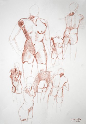 Zeichnungen in unterschiedlichen Techniken, vornehmlich Graphit, Kohle, Rötel.