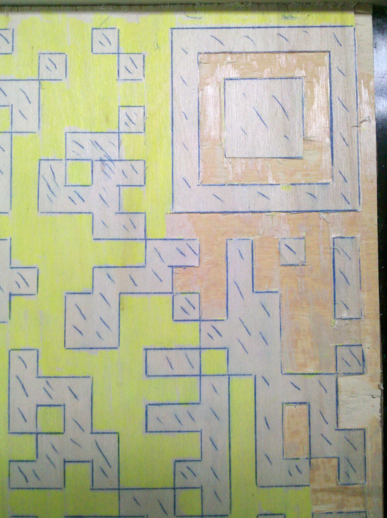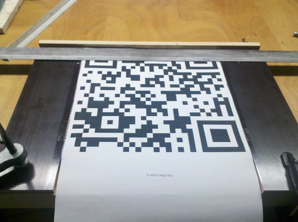 Das Ausgangsmaterial: gesperrte Pappel QR-Code Vorlage trifft Holzplatte