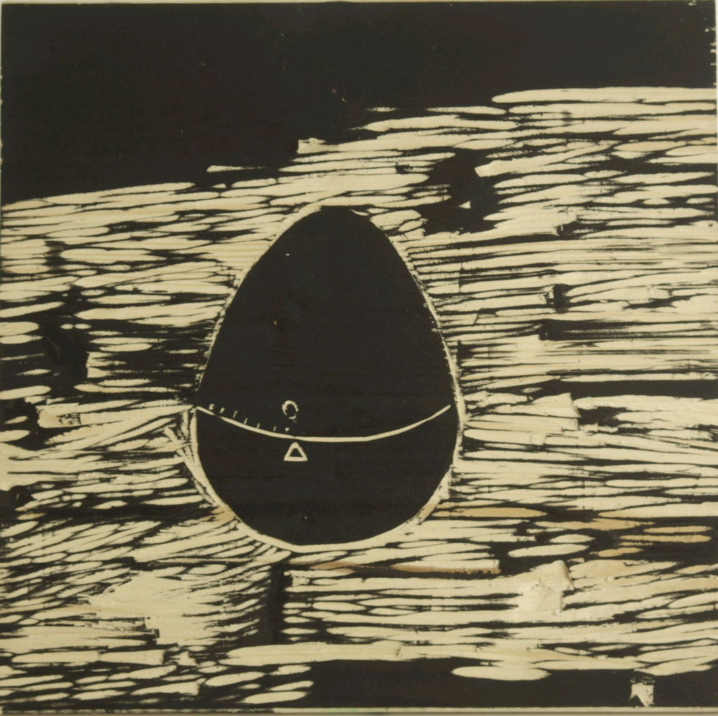 Die Künstlerin verwendet zu ihrer Aussage u.a. die Symbolik des Holzschnitts.