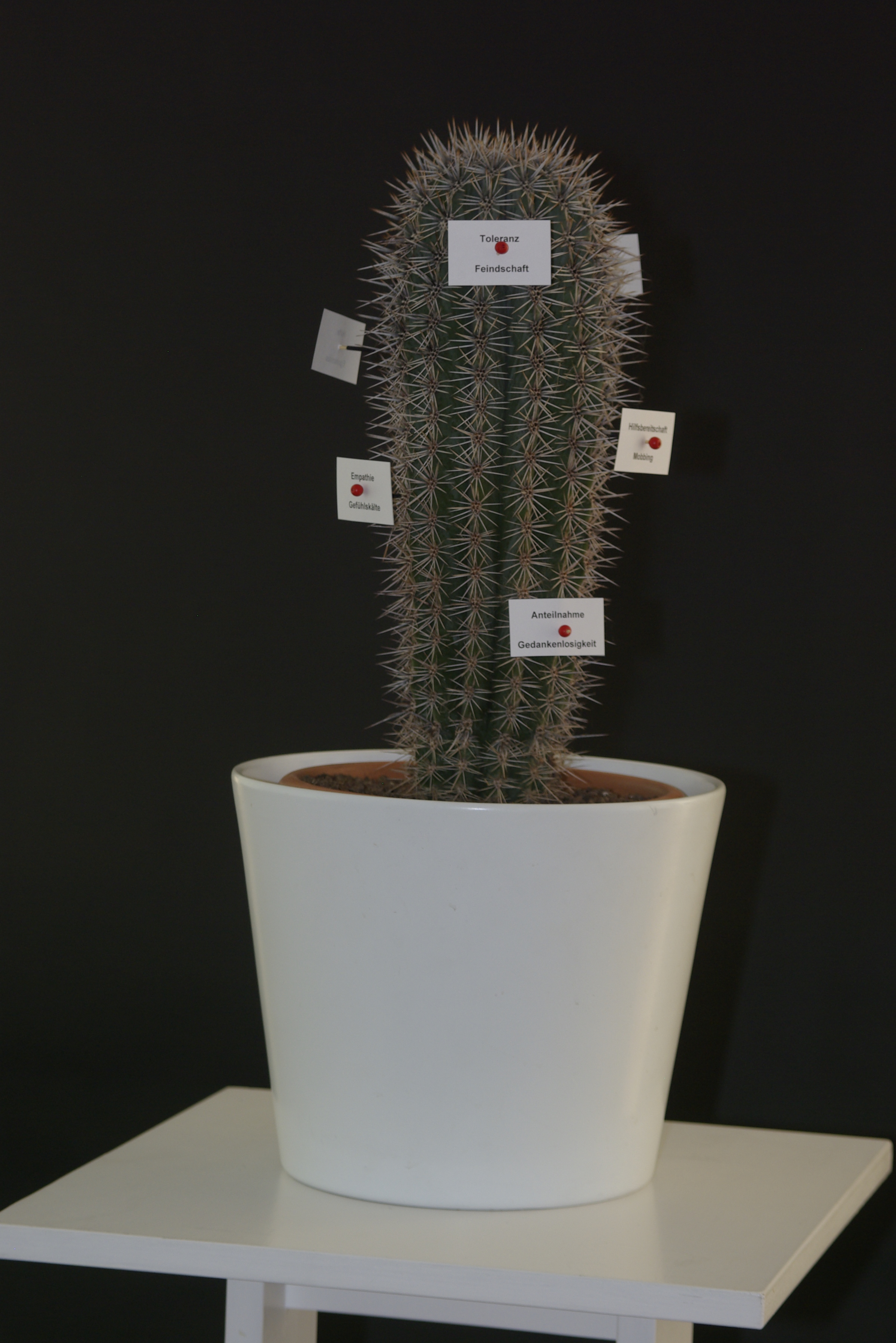 Ich habe den Kaktus gewählt, weil er mir über sein karges Wesen, über seine zur Verteidigung wachsenden Stacheln die Möglichkeit bietet, mich mit dem, was ich sagen möchte, reduziert zu äußern.