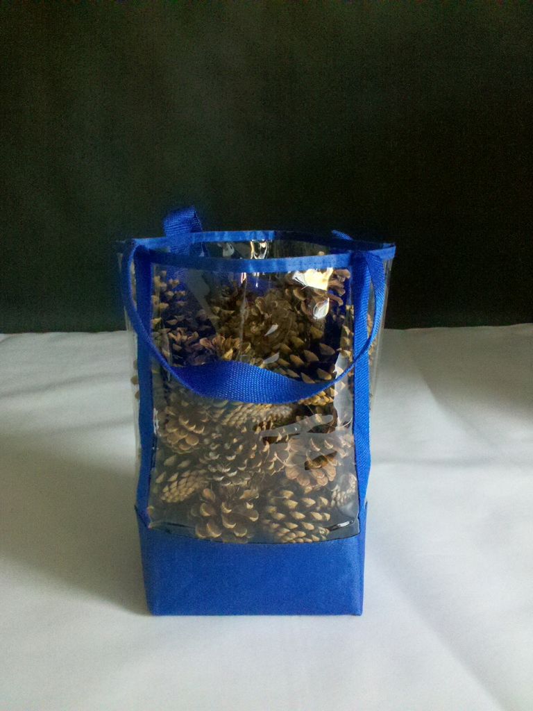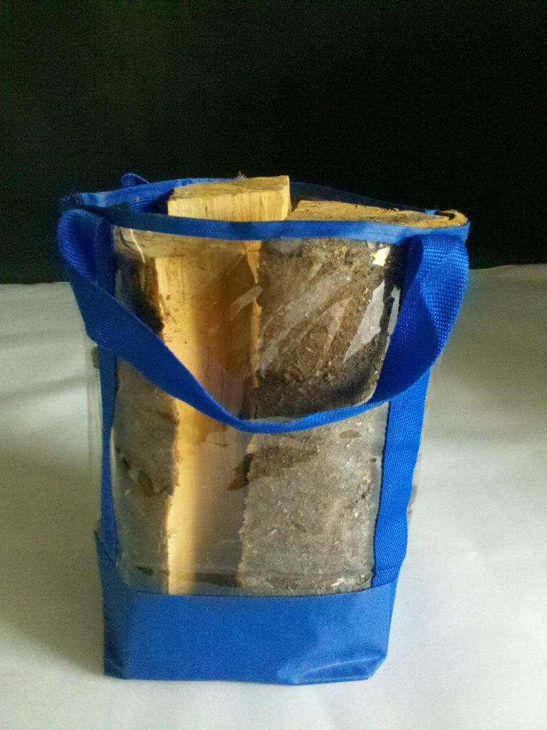 Aber nicht nur der Baum ist der Begleiter des Menschen, sondern auch die Taschen. Ich habe in die Taschen gepackt: Holzscheite, gezeichnete Bäume auf Packpapier, Zapfen, Papierschnipsel